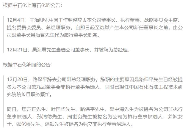 中石化最新人事變動情況