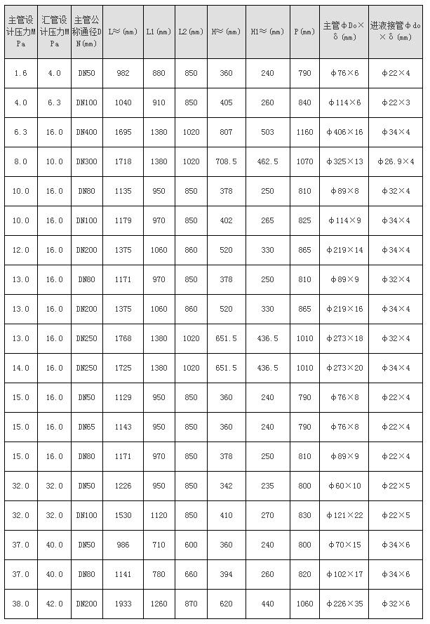 注:1.表中L1相同的情況下,當采用不同法蘭標準和密封麵型式時,L值會不相同;2. 進液接管φdo×δ按用戶要求確定。 9.主要部件型號及材質